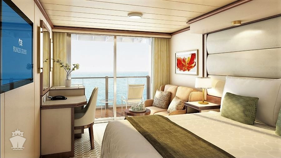 Vybavenie kajuty: 2 lôžka spojiteľné do manželského, posteľná bielizeň z kvalitnej 100% bavlny, kúpeľňa so sprchou, sušič na vlasy, kúpeľňová kozmetika, minibar, Tv s plochou obrazovkou, skriňa, stolík, bezpečnostná schránka.