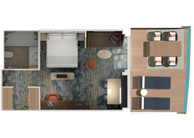 | KS - Suite Carnival Excel Corner 37 m² + rohový balkón 29 m². 9. až 15. paluba vpredu. Výhody Suite. | 4 922 € 2 461 € za osobu | ||