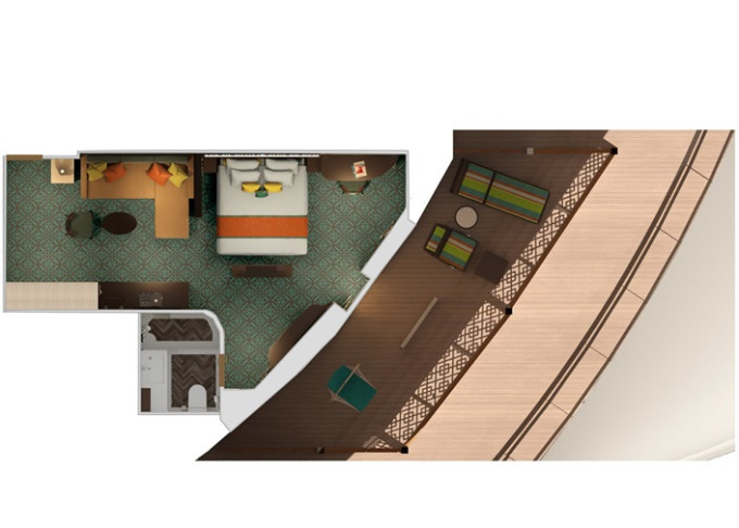 | HG - Kajuta Havana Cabana s väčším patiom 19 m² + vonkajšie patio 9 m². 8. paluba vpredu. Tropický štýl, vstup do exkluzívnej zóny Havana. | 2 640 € 1 320 € za osobu |