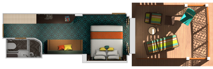 | HE - Kajuta Havana Cabana s patiom 19 m² + vonkajšie patio 8 m². 8. paluba vpredu. Tropický štýl, vstup do exkluzívnej zóny Havana. | 2 654 € 1 327 € za osobu | ||