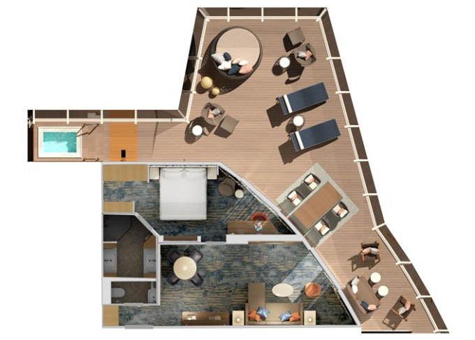 | HU - Suite Havana Cabana Corner 32 m² + vonkajšie rohové patio 15 m². 8. paluba vpredu. Tropický štýl, vstup do exkluzívnej zóny Havana. Výhody Suite. | 4 226 € 2 113 € za osobu | ||