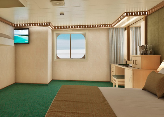 Základné vybavenie všetkých kajút: kúpeľňa so sprchou a WC, TV s plochou obrazovkou, telefón, elektrická zásuvka 110 AC, regulovateľná klimatizácia, postele Carnival Comfort, sušič na vlasy, bezpečnostná schránka, mini chladnička (táto nie je vo všetkých kajutách).