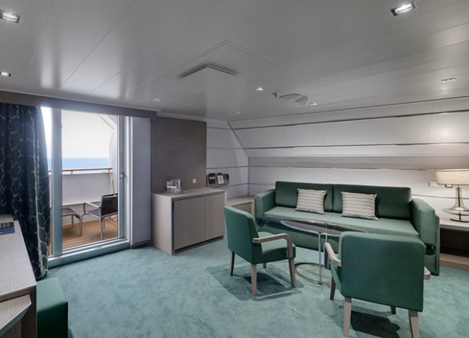 Aurea suite: 17 - 49 m², podľa typu; kajuty majú prémiovú polohu v rámci lode a sú komfornejšie vybavené.