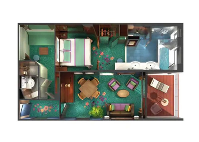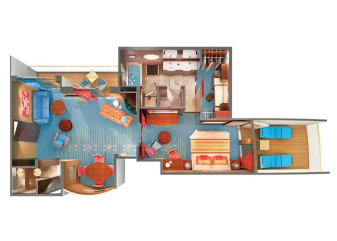 S4 - Deluxe Family Suite - 2 spálne 50 m² / balkón 5 m². Výhody Suite. 11. paluba - vpredu, stred. Max 6 osôb. 4 108 € 2 054 € za osobu