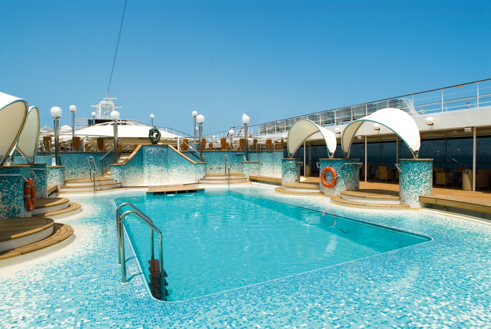 - Športové aktivity na otvorených palubách (jogging, basketbal, futbal, tenis), bazény a ležadlá