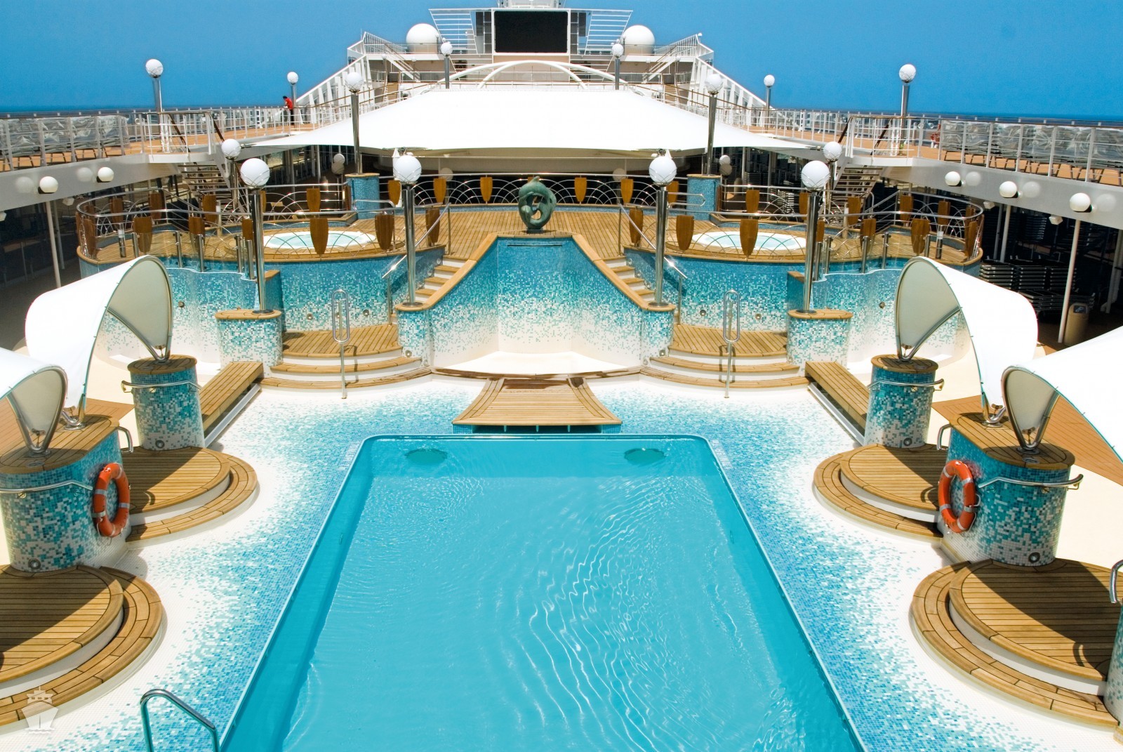 - Používanie zariadení lode: bazény, vírivky a lehátka, plážové osušky, fitnescentrum ...