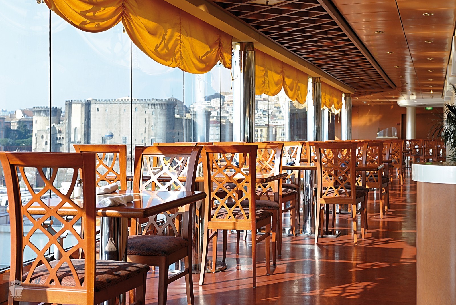 L´Oleandro- (5. paluba) s kapacitou 720 hostí. Otvorená ako voľné sedenie na raňajky 7:30-09:30 a obed 12:00-14:00. Pri večeri je zasadací poriadok a turnusy o 19:00 a 21:30.