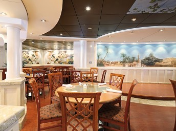 Le Maxim´s (6. paluba) s kapacitou 714 hostí. Otvorená pre večere. Pri večeri je zasadací poriadok a turnusy o 19:00 a 21:30.