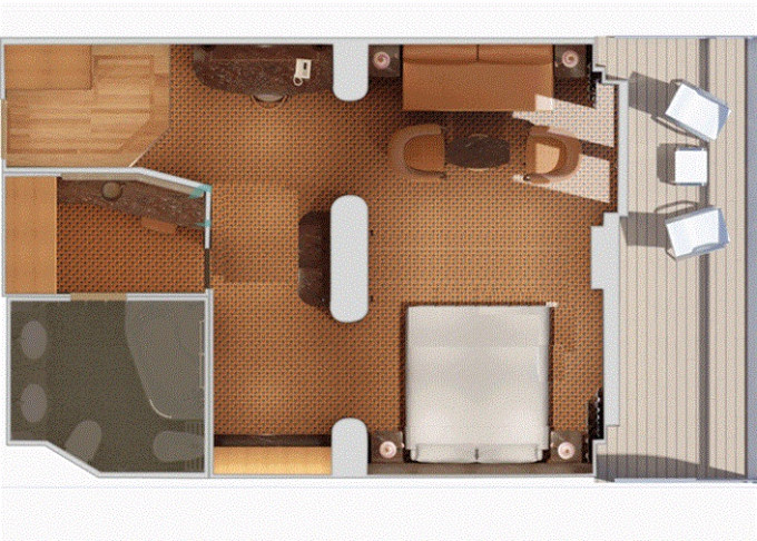 | OS - Ocean Suite s balkónom cca 38 m² vrátane balkóna. 6,7,8. paluba stred. | 1 470 € 735 € za osobu | ||
