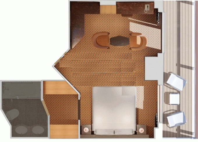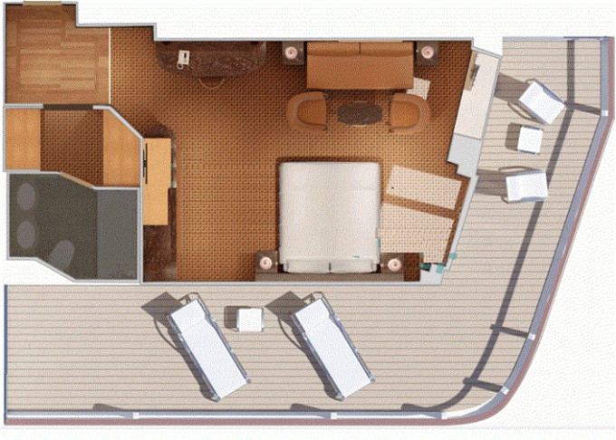 | GV - Grand Vista Suite cca 53 - 68 m² vrátane balkóna. 4. až 8. paluba. | 2 342 € 1 171 € za osobu | ||