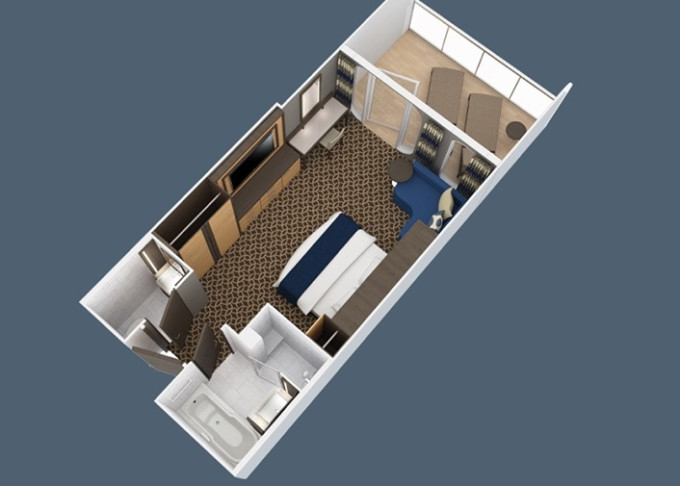 | 2U - Vnútorná kajuta s virtuálnym balkónom 15 m². Obrazovka veľkosti balkónových dverí s premietaným výhľadom. Centrálne umiestnenie. Max 2 osoby. | 3 264 € 816 € za osobu | ||