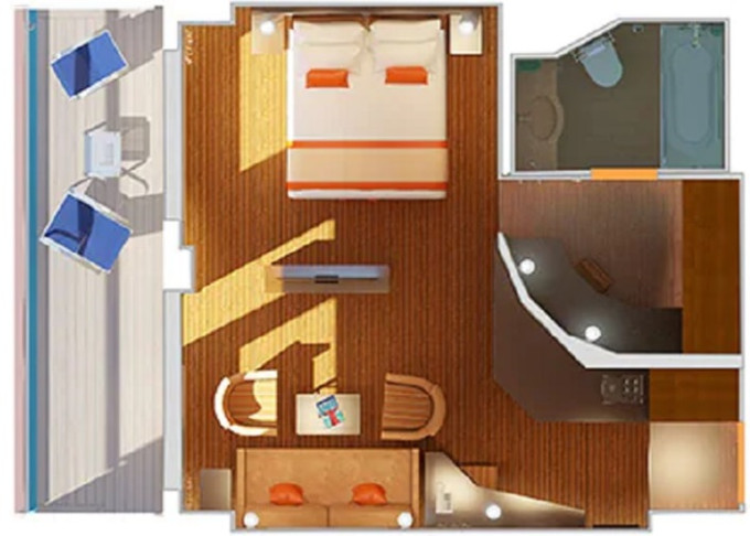 | 8S - Kajuta s balkónom Cloud 9 Spa 18 m² + balkón 3 m². 11. paluba vpredu. Voľný vstup do Spa a balíček Cloud 9 Spa. | 664 € 332 € za osobu |