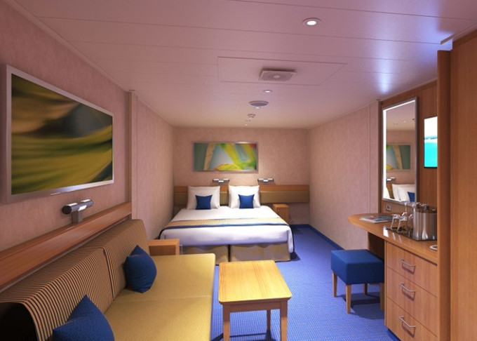 Vybavenie všetkých kajút: kúpeľna s WC, telefón, zástrčky 110 AC, nastaviteľná vzduchová klimatizácia, posteľ Carnival Comfort, sušič na vlasy, bezpečnostná schránka, skriňa, stolík, TV s plochou obrazovkou a mini chladnička (bez náplne).
