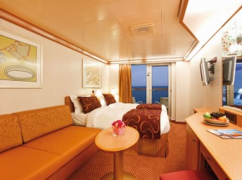 | PS - Panorama Suite s balkónom 62,5 m² (vrátane balkónu). Max 2-4 osoby. 4. až 8. paluba. Cenový model All Inclusive. Výhody Suite. | 8 196 € 2 049 € za osobu |