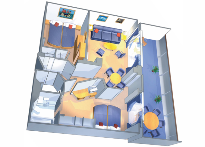 VP - Ocean View Panoramic Suite (bez balkónu) 38 m². Panoramatické neotvárateľné okná. 12. paluba. Max 6 osôb. Výhody Suite. 7 328 € 1 832 € za osobu