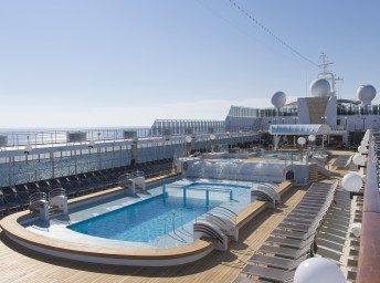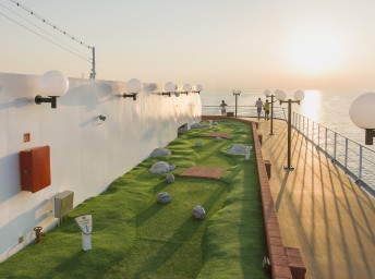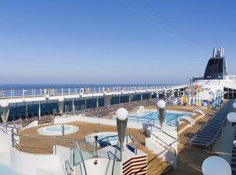- Športové aktivity na otvorených palubách (jogging, basketbal, futbal, tenis), bazény a ležadlá