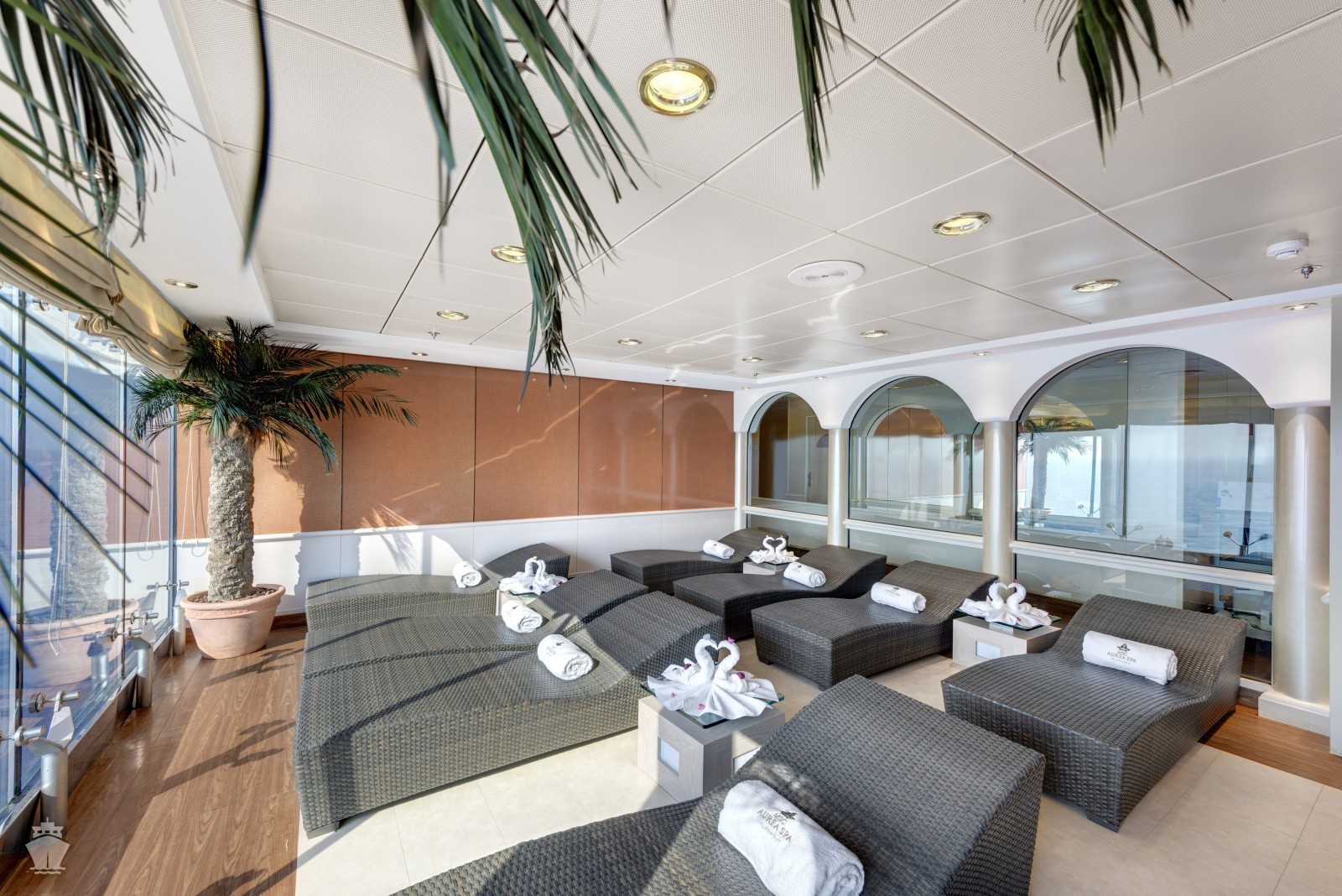 - Používanie zariadení lode: bazény, vírivky a lehátka, plážové osušky, fitnescentrum ...