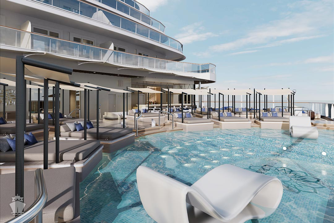 | Ocean Residence - Retreat Residence Suita 63 m² + Terasa s vírivkou a sedením 14 m² / 7. paluba: 18 m². Spálňa s obývacou a jedálenskou časťou, šatník. Koktailová súprava, minibar, kávovar, vodná kanvica, ďalekohľad, sejf, mramorová kúpeľňa s vaňou a sprchou, extra wc. Taška Technogym Case Kit. Fľaša šampanského na privítanie. Služby osobného majordóma. Maximálna kapacita 3 dospelí alebo 2 dospelí + 2 deti pod 18 rokov. | 44 360 € 44 360 € za osobu | ||