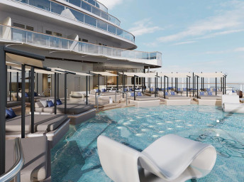 | Ocean Residence - Serenity Residence Suita 60 m² + Terasa s vírivkou, sedením, pohovkou a lehátkami 7. paluba: 53 m² / 9. paluba: 66 m². Spálňa s obývacou a jedálenskou časťou, šatník. Koktailová súprava, minibar, kávovar, vodná kanvica, ďalekohľad, sejf, mramorová kúpeľňa s vaňou a sprchou. Taška Technogym Case Kit a Technogym Bench. Fľaša šampanského na privítanie. Služby osobného majordóma. Maximálna kapacita 3 dospelí alebo 2 dospelí + 2 deti pod 18 rokov. | 118 752 € 29 688 € za osobu | ||